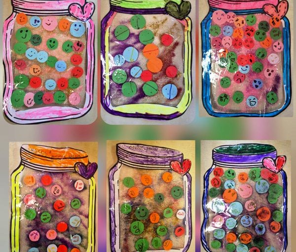 Kūrybinėje dalyje vaikai kūrė savo „jausmų uogienės stiklainį“. Kiekvienas gavo stiklainio kontūrą, kurį dekoravo pagal savo nuotaiką – spalvino, puošė blizgučiais, klijavo spalvotus „uogienės burbuliukus“. Ant kiekvieno apskritimo vaikai piešė veidelius – džiaugsmingus, liūdnus, piktus ar nustebusius, taip simboliškai „užkonservuodami“ savo jausmus stiklainyje. Kiekvieno vaiko darbas tapo unikaliu jo emocijų atspindžiu.