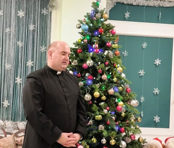Klebonas pasveikino vaikučius, tėvelius bei darželio kolektyvą su nuostabia švente, linkėdamas sveikatos, ramybės, o su mažaisiais ugdytiniais pasimeldė už tėvelius. Dalindamiesi kalėdaičiu visi drauge linkėjo vienas kitam sveikatos, vilties, gerumo,  ramybės ir gražių, prasmingų bei jaukių švenčių.