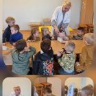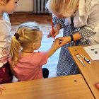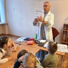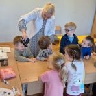 Dnia 26 września wychowankowie gr. ,,Motylki“ z panią Edytą M., aby pogłębić swoją wiedzę na temat zdrowia wybrały się na wycieczkę do przychodni w Podbrzeziu. Po wejściu do przychodni trafiły do poczekalni, gdzie czekały pracowniczki przychodni p. Irena Liachowicz i p. Rima Masiulionytė. Panie opowiedziały dzieciom, jak należy się zachowywać w takim miejscu i na czym polega ich praca, pokazali jak wygląda gabinet lekarski. Dzieci mogły zobaczyć różne narzędzia medyczne, takie jak stetoskopy, termometry i ciśnieniomierze.