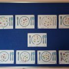 Kūrybinėje dalyje vaikai spalvino rankos kontūro piešinį ir žymėjo vietas, kur dažniausiai pasilieka mikrobai. Taip jie įtvirtino žinias apie rankų plovimo penkių pirštų taisyklę.