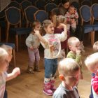 Užsiėmimo eiga: Pasisveikinimas, rytinė mankšta su muzika.