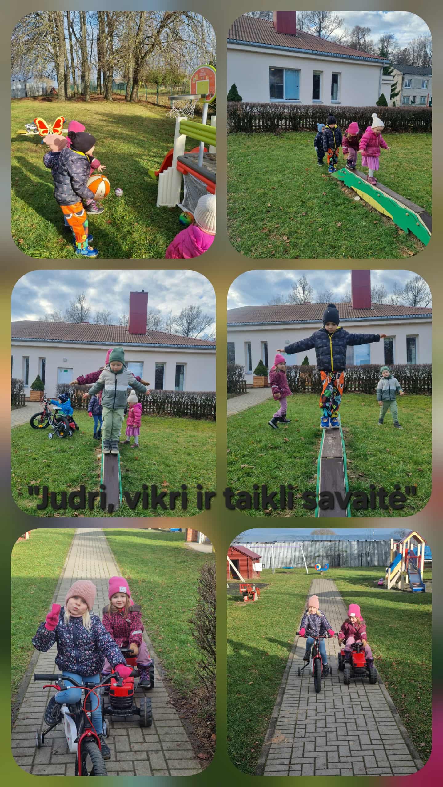 Lapkričio 3–7 d. – „Judri, vikri ir taikli savaitė“. Organizuoti pratimus ir aktyvias veiklas, lavinančias judesių koordinaciją, orientaciją erdvėje ir pusiausvyrą.